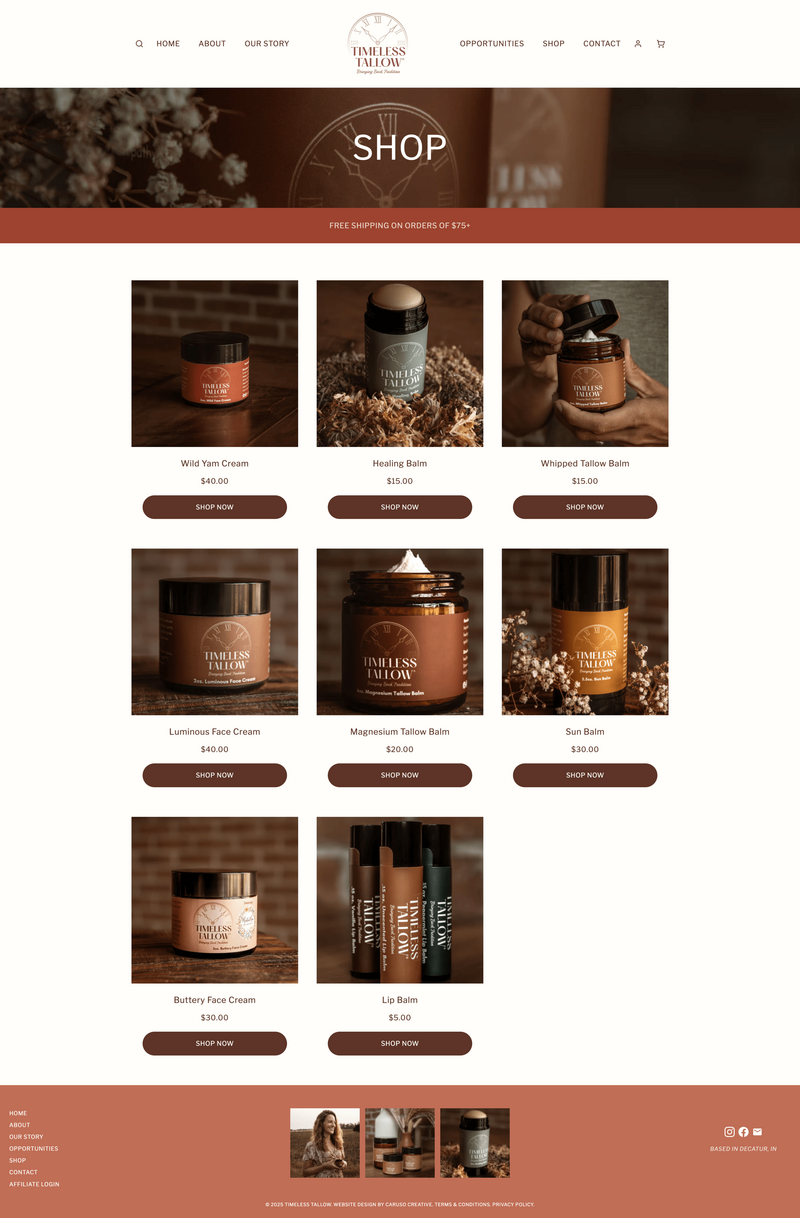 Special features: Matched the Shopify shop to existing Showit site, added affiliate program functionality